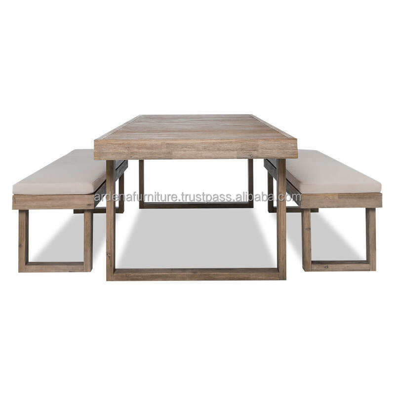 Modern Rectangular Teak Wood Dining Table Set Removable Cushion Seat for Outdoor Hotel Banquet Restaurant Furniture Park Use