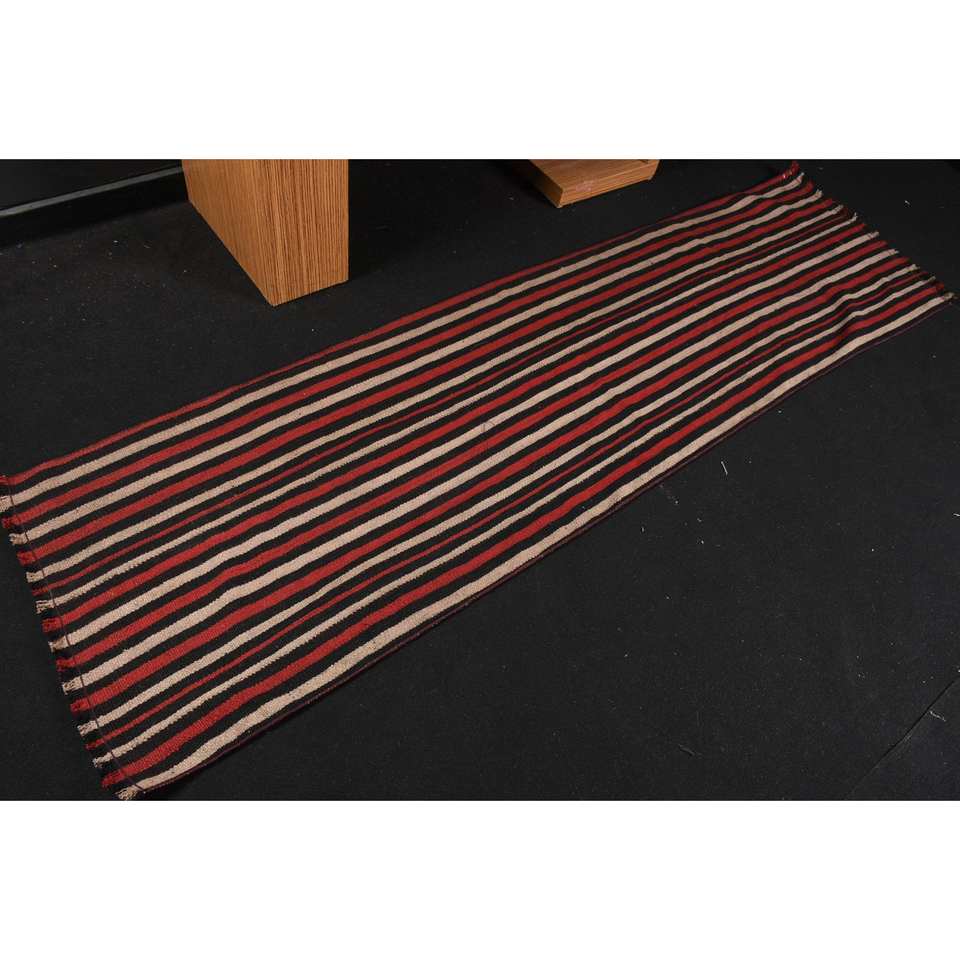 Modern Red Black Wool Rug 2.1 X 7.7 ft Handmade Large Area Turkish Area Abstract Pattern Rectangular Hallway Design 10mm Latex