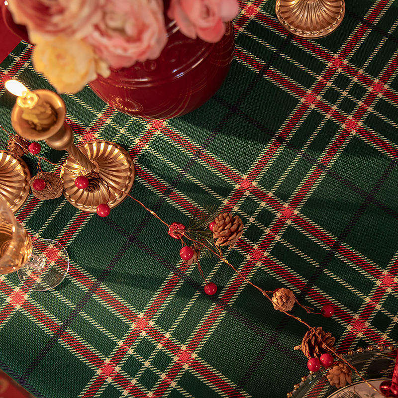 Modern Red Rectangle Cotton Tablecloth Home Decorative Plaid Fabric for Wedding Parties Woven Vinyl