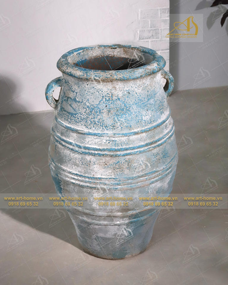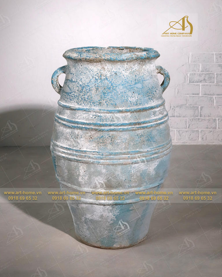 Modern Refined AN048H92TSA Teal Shiny Antique Ceramic Flower Pot for Garden Planting and Mini Landscape Beautification