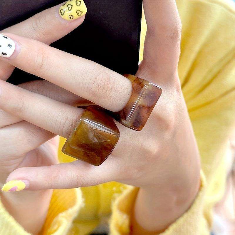Modern Resin Round Finger Ring Handmade Geometric Jewelry Stylish Acrylic Epoxy Model Angel Women Girls Fashion
