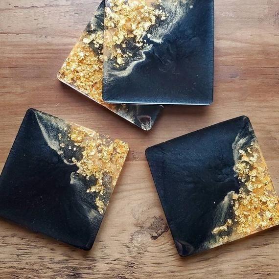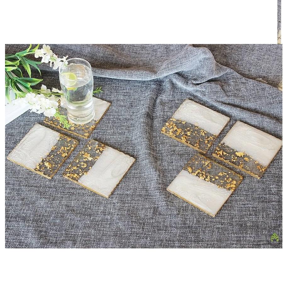 Modern Resin coaster Golden Flower Design and Resin coaster with Pressed Flower Epoxy Resin Coasters for Christmas Gift