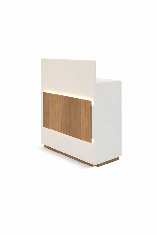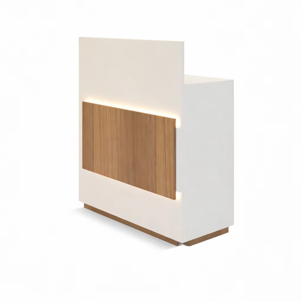 Modern Retail Cash Counter LED Designer Reception Desk Shop Billing Counter with Storage Cabinet Premium Wooden Finish Custom