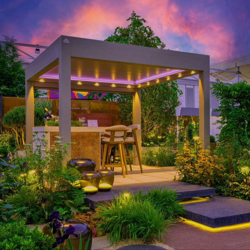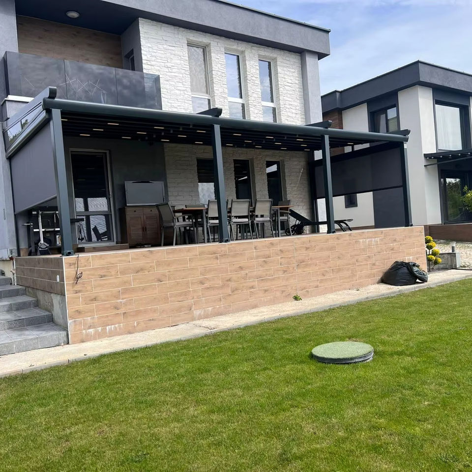Modern Retractable Louver Arch Pergola Aluminum Alloy Powder Coated Eco Friendly Bioclimatic Waterproof Easily Assembled