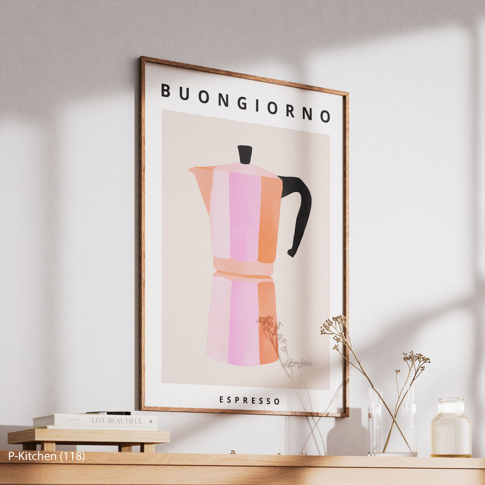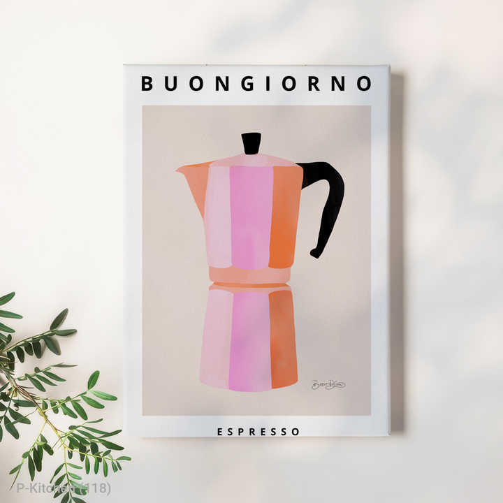 Modern Retro Kitchen Canvas Art Caffeine Aesthetic Moka Pot Pink And Orange Coffee Bar Decor
