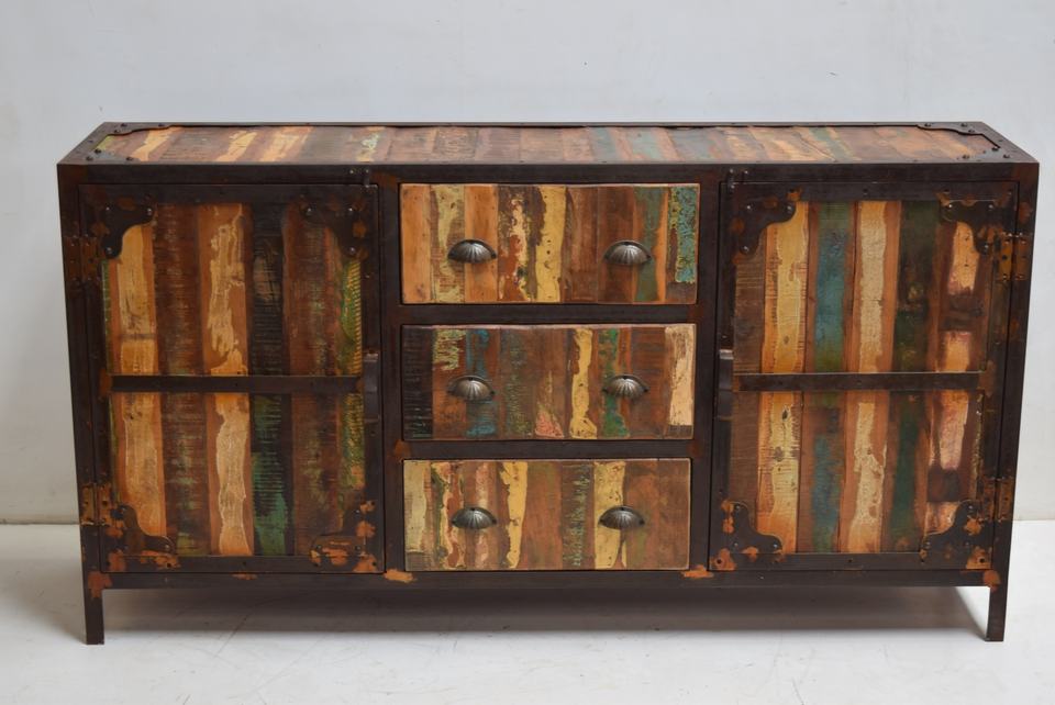 Modern Retro Reclaimed Wood Storage Cabinet 2 Door 3 Drawer Sideboard Industrial for Dining Home Living Room Multicolor
