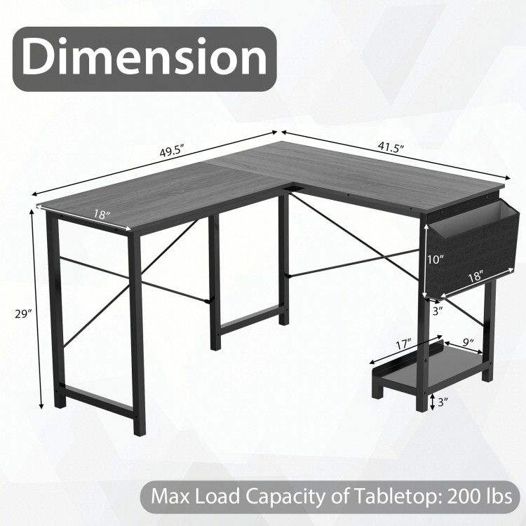 Modern Reversible Computer Desk with Storage Pocket and CPU Stand for Working Writing Gaming