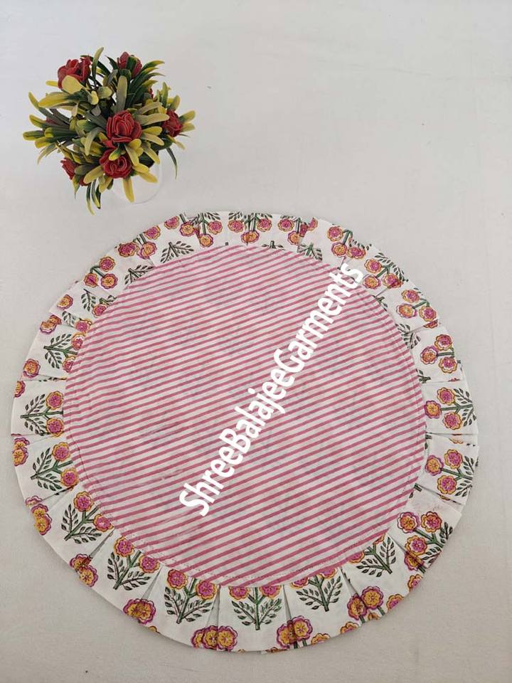 Modern Reversible Pink Green Hand Block Print Floral 100% Cotton Wedding Place Mats Disposable Reusable Dining Table Decor Frill