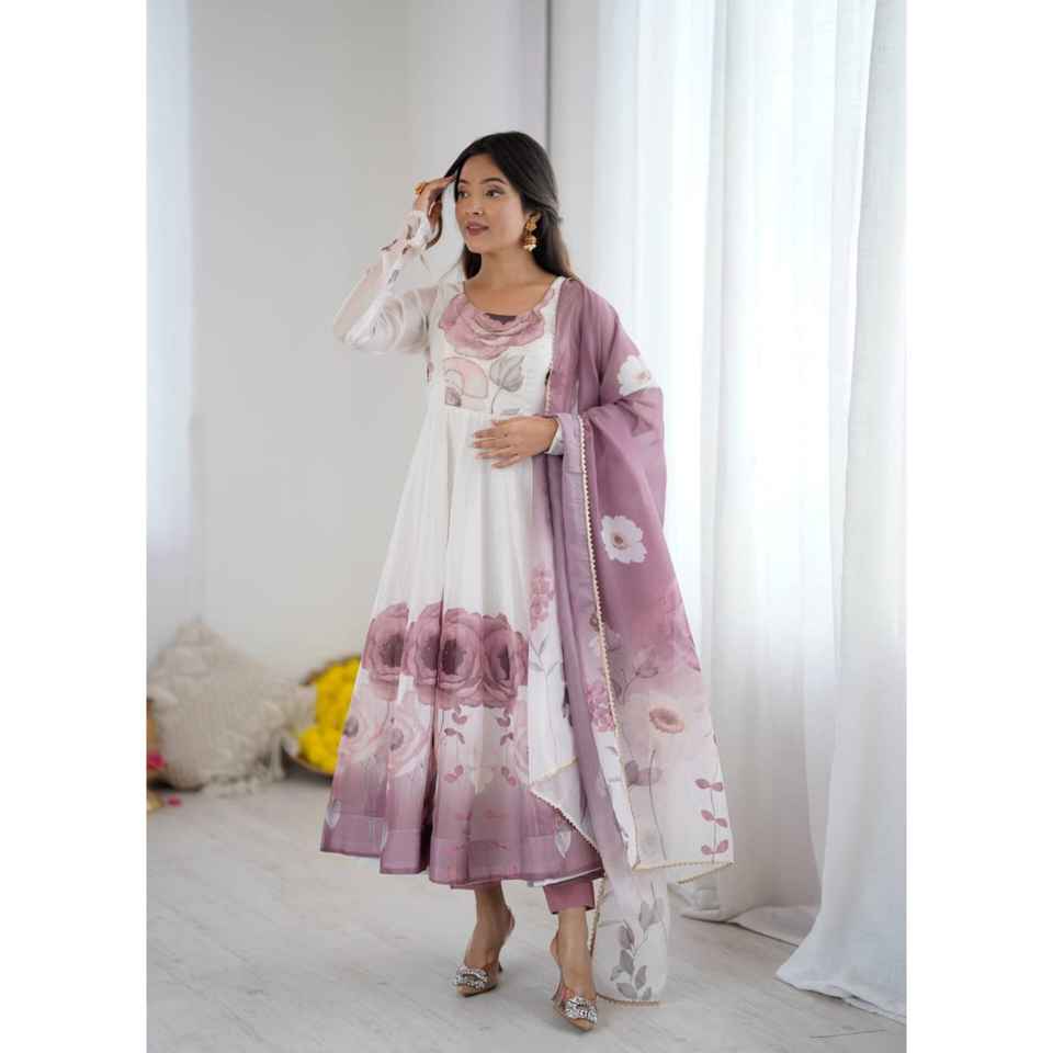 Modern Reversible Pure Soft Organza Silk Fabric Kali Pattern Dupatta Set Ready Wear for Women
