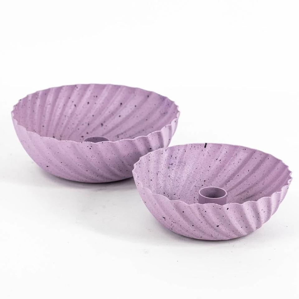 Modern Ribbed Shell Jesmonite Candle Holder - Nordic Scalloped Concrete Taper Candle Stick Base Aesthetic Pastel Speckled Decor