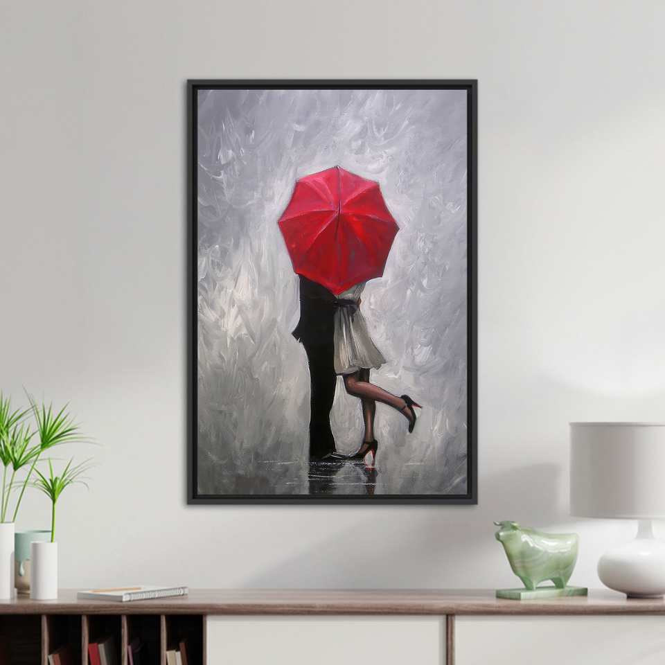 Modern Romantic Couple Canvas Print, Elegant Wall Art for Living Room,Black Framed