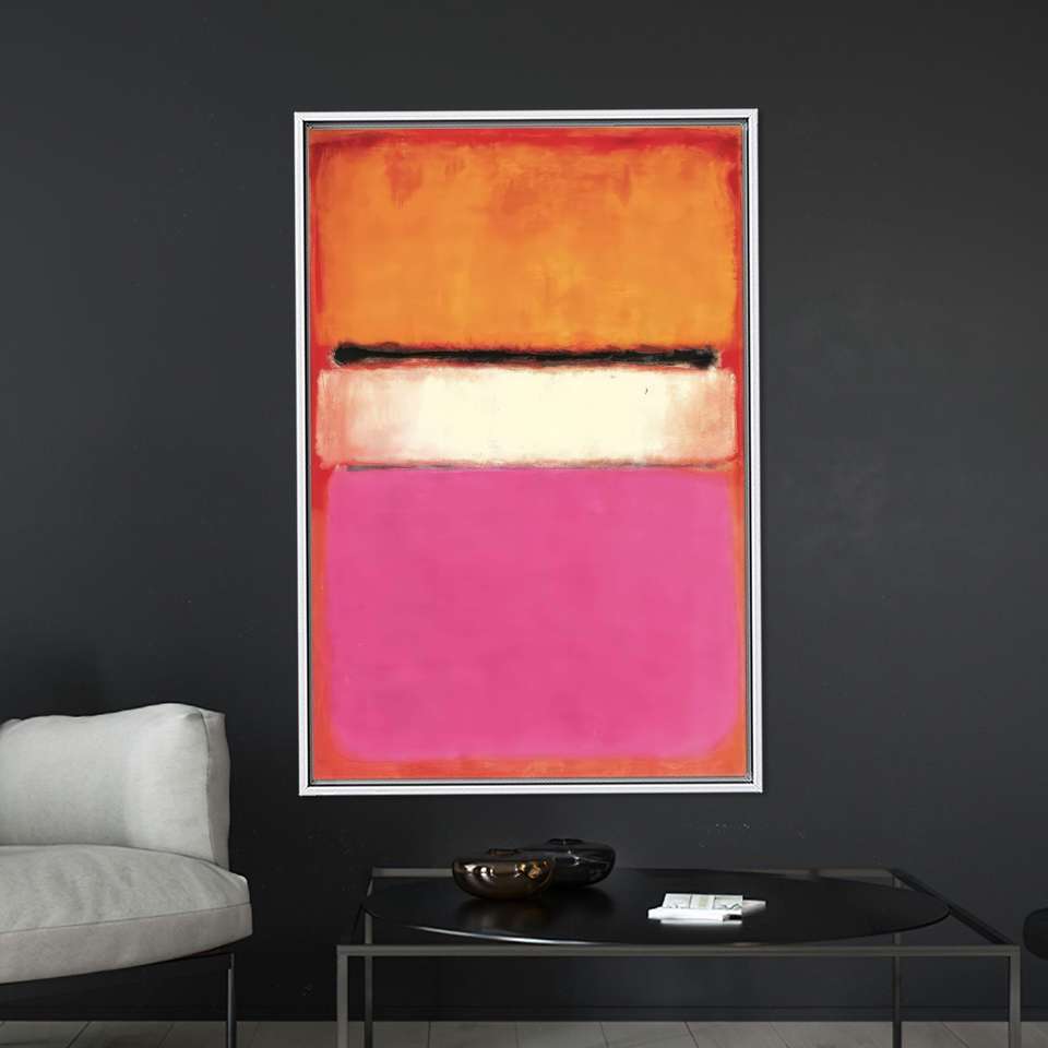 Modern Rothko Style Printed Canvas Art, Pink & Orange Abstract Wall Decor,White Framed