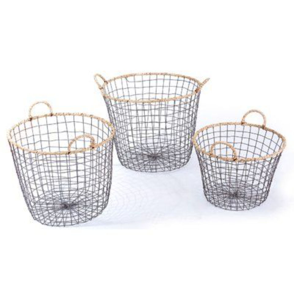 Modern Round Copper Wire Storage Basket With Handles Stylish Rose Gold Metal Laundry Bin Decorative Home Organizer For Blankets