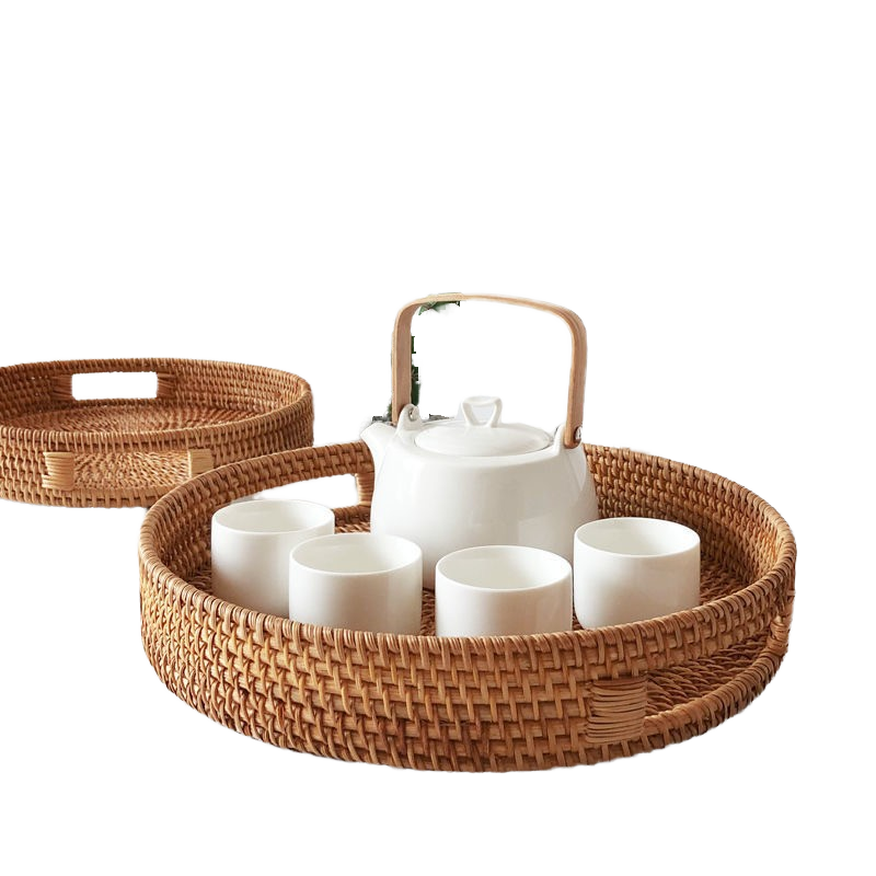 Modern Round Handwoven Rattan Storage Basket Hot Sale Snacks Tray for Organizing Your Space