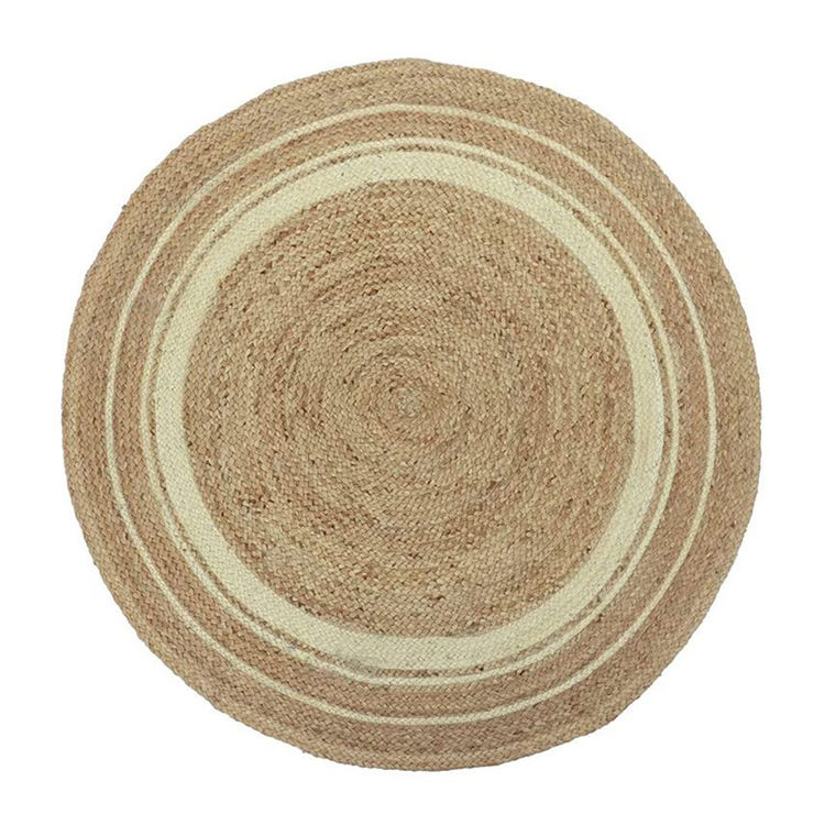 Modern Round Jute Rug Handwoven Eco-Friendly Embroidered Coastal Boho Style for Kitchen Abstract Pattern Coastal Living Embrace