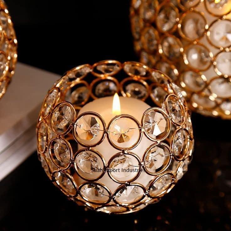 Classic Round Shape Gold Crystal/Metal Votive Candle Holder for Home & Christmas Lighting Decorative Candle Votive