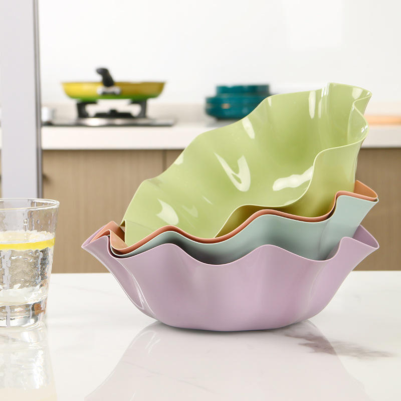 Modern Ruffled Edge Fruit Plate Plastic Serving Bowl For Kitchen Party Snack Display