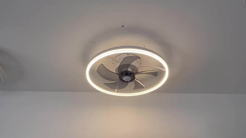 Modern Industrial Ceiling Fan with Low Profile Cage 60W Remote Control ABS Body Built-in Light Unavailable on Platforms-Temu FCJ