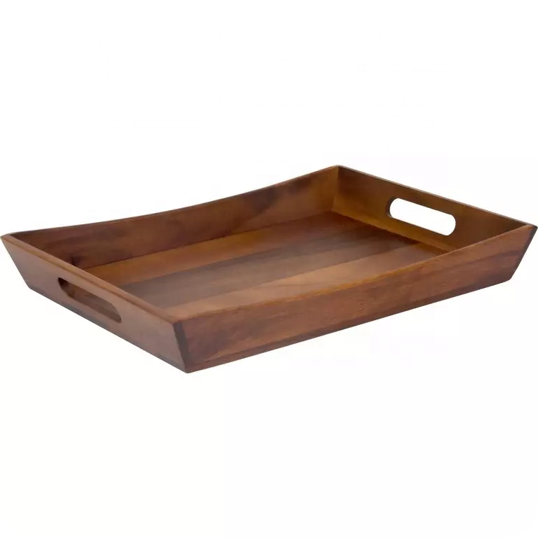 Modern Rustic Acacia Wood Serving Tray Eco-Friendly Plate Rack for Breakfast Foods and Kitchen Dishes for Parties