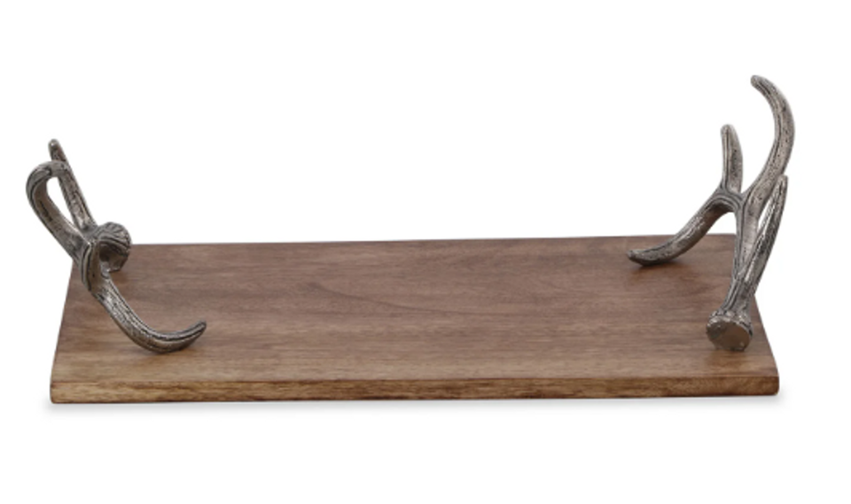 Modern Rustic Centerpiece | Oval Tray with Faux Antler Handles