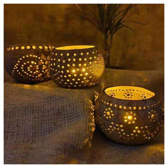Modern Rustic Coconut Shell Candle Stand Sun Rays Handmade Eco Tealight Holder Decorative Natural Accent for Interiors