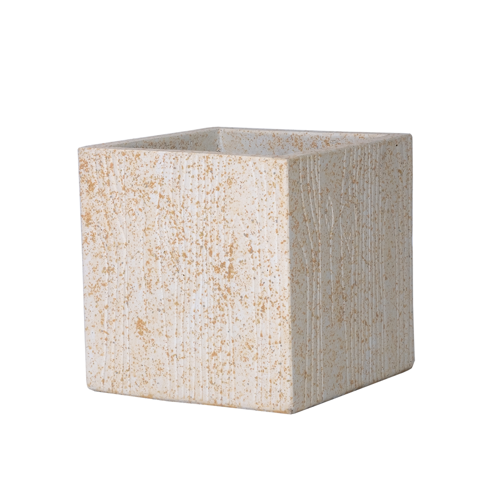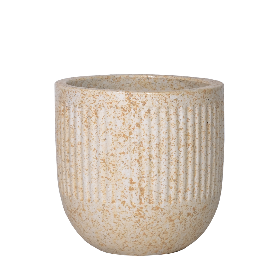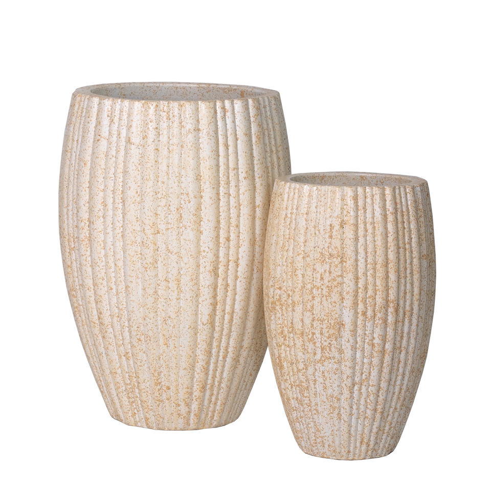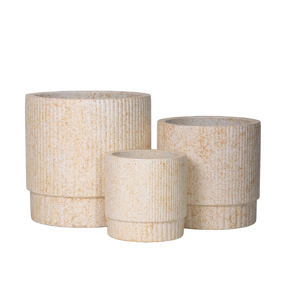 Modern Rustic Concrete Pot Vase with Ribbed Detailing in Speckled Beige Artificial Flower Compatible Floor Planter Drainage Hole