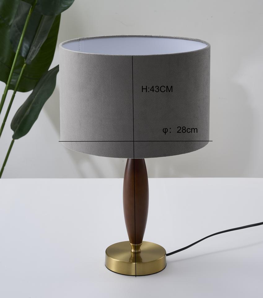 Modern Rustic E27 Edison Desk & Bedside Light Rubberwood Table Lamp Grey Velvet Shade for Reading Room