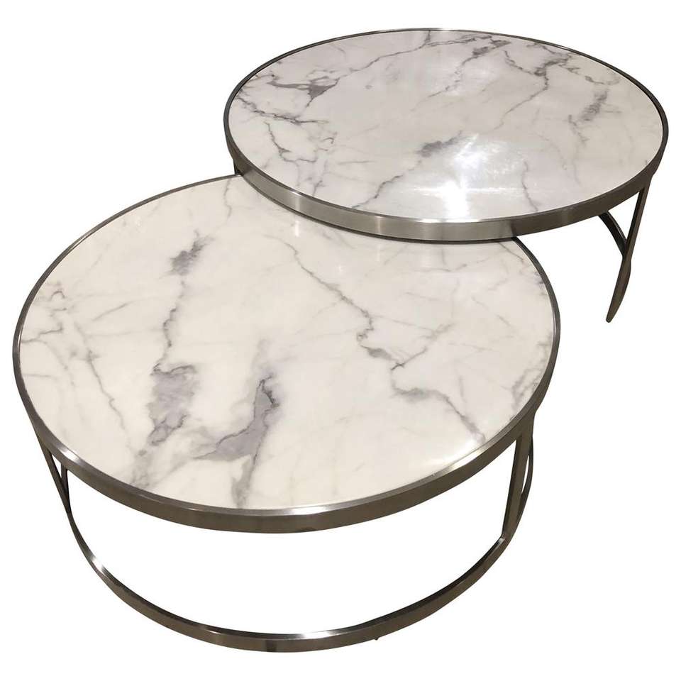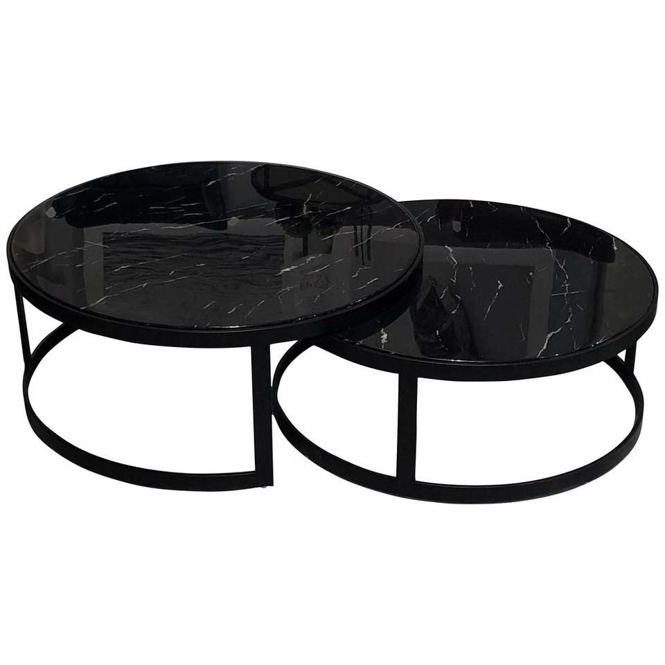 Modern Rustic Nesting Coffee Table Set of 2 Home Restaurant Hotels Metal Tables with Glass Top for Living Room Furniture