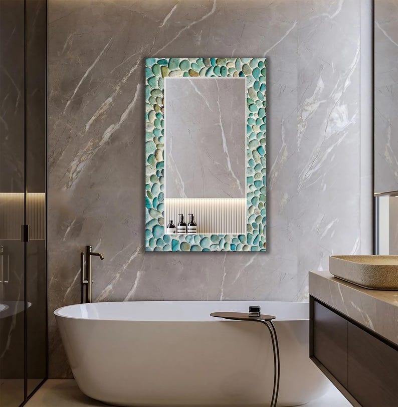 Modern Rustic Wooden Wall Mirror Handmade with Resin Design Strong MDF Back Bone Inlay Craft for Vintage Wedding Interiors