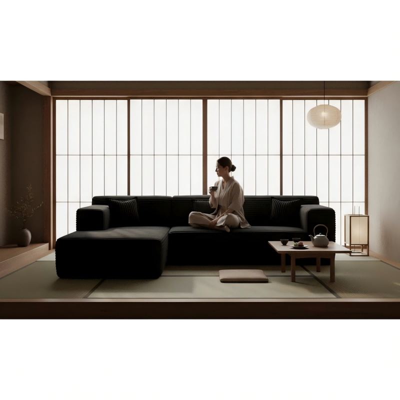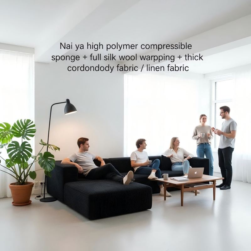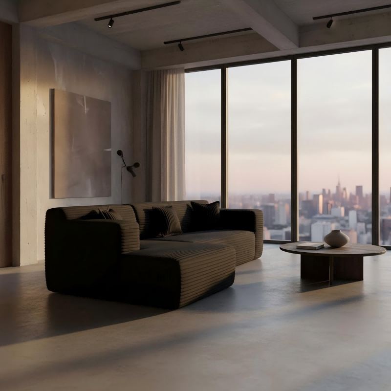 Modern S-Shape Modular Sectional Sofa, A022 Wide-Wale Corduroy Convertible Sofa Bed for Living Room & Apartment
