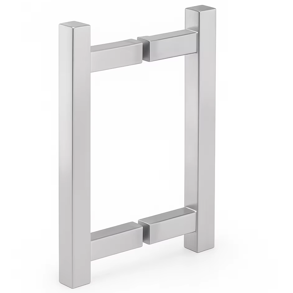 Modern SS304 Stainless Steel Hotel Shower Glass Door Handle Set Minimalist Rectangle Design Durable Satin Finish Bathroom
