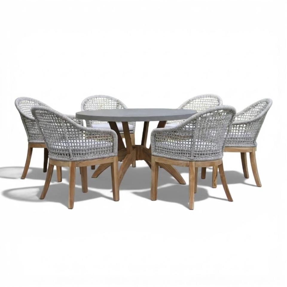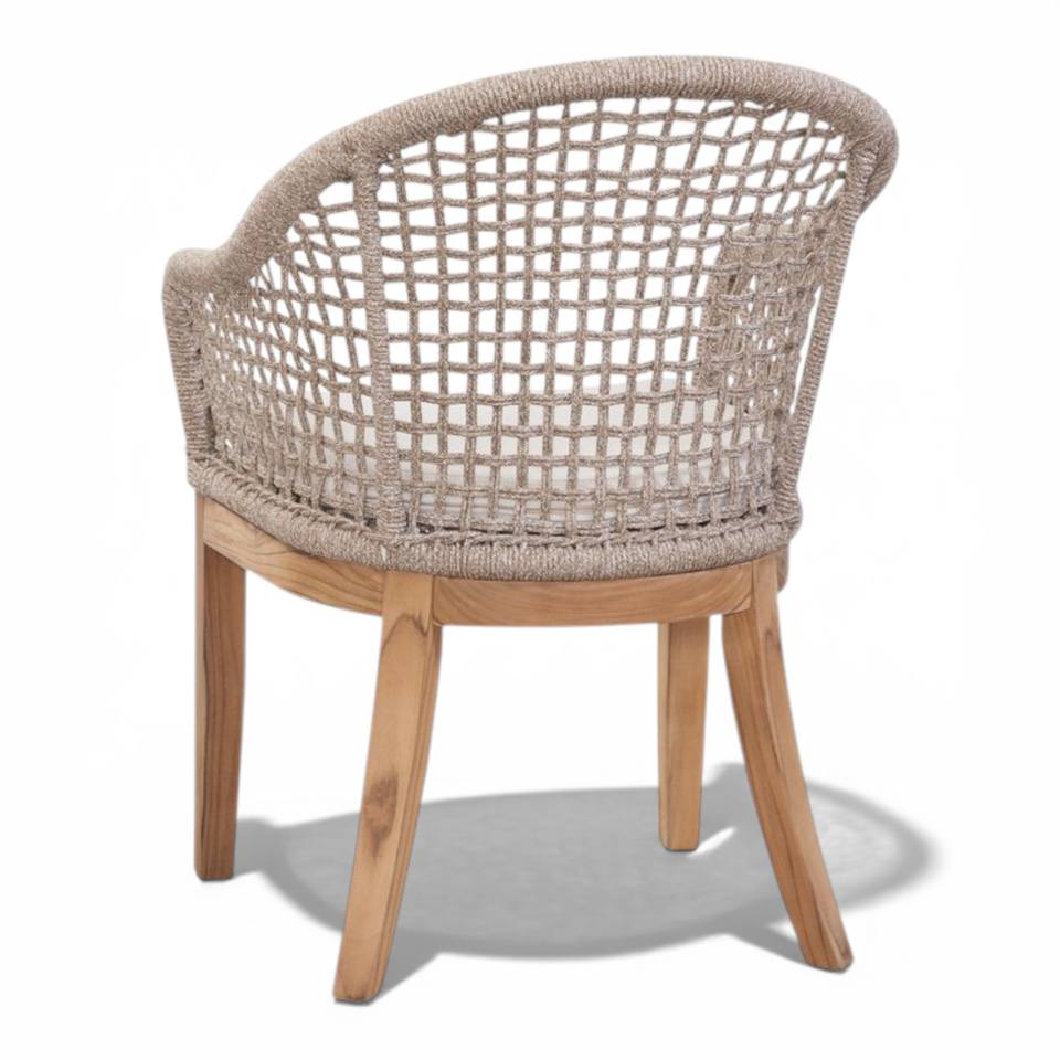Outdoor Dining Chair Rope Woven Seat Solid Teak Wood Frame