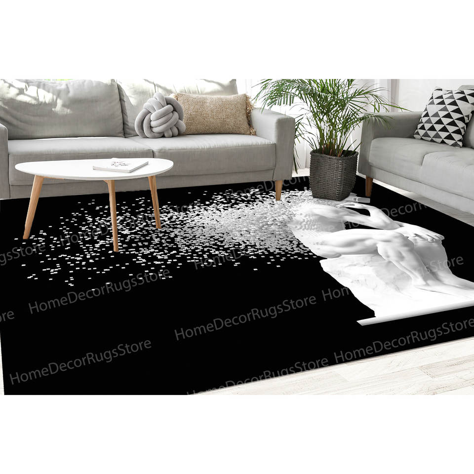 Modern Sculpture Printed Rug, Black and White Trendy Rug for Home Decor,Nonwoven Soft Rug