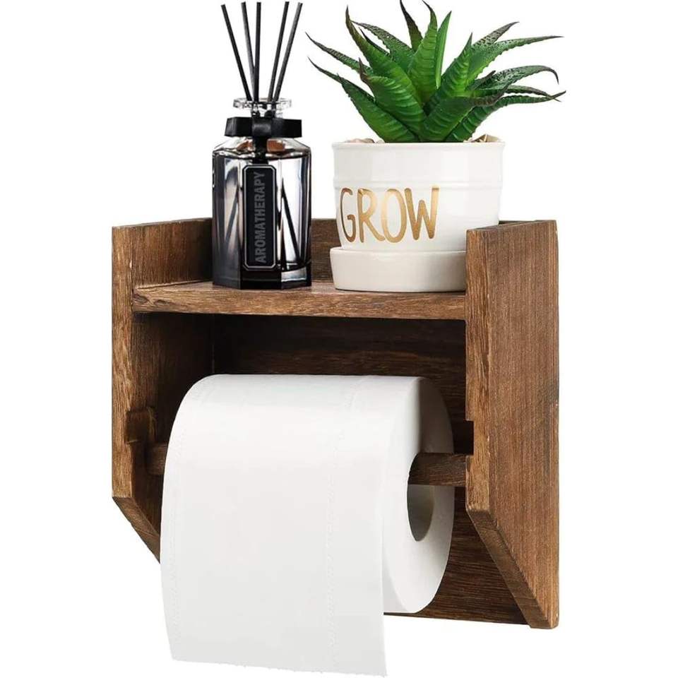 Modern Self-Adhesive Mango Wood Robot Face Toilet Roll Holder 6.5 X 5 X 4.5 Inches Customizable for Hotels Hospitals Brown Color