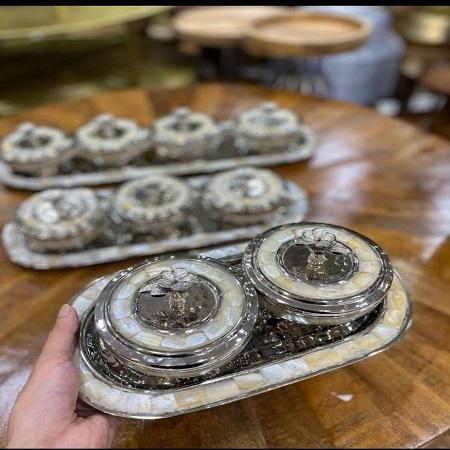 Modern Serving Bowl Set of 2 for Kitchenware Hotel Restaurant Dining ware decorative Unique design Metal Silver Color Dinnerware