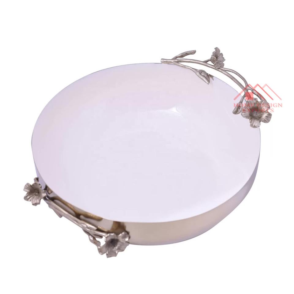 Latest Design Modern Serving Bowl with Leaf Handle for Dinnerware and Kitchenware Metal Serving Rice and Soup Bowl Wholesaler