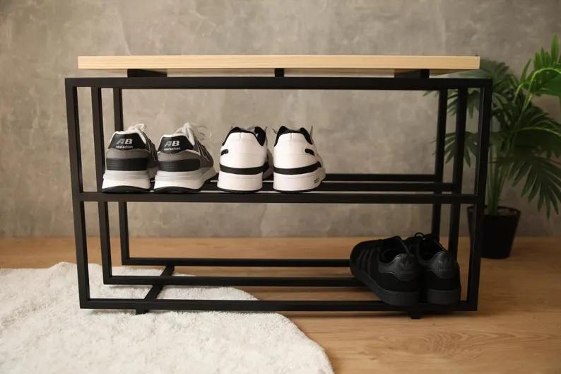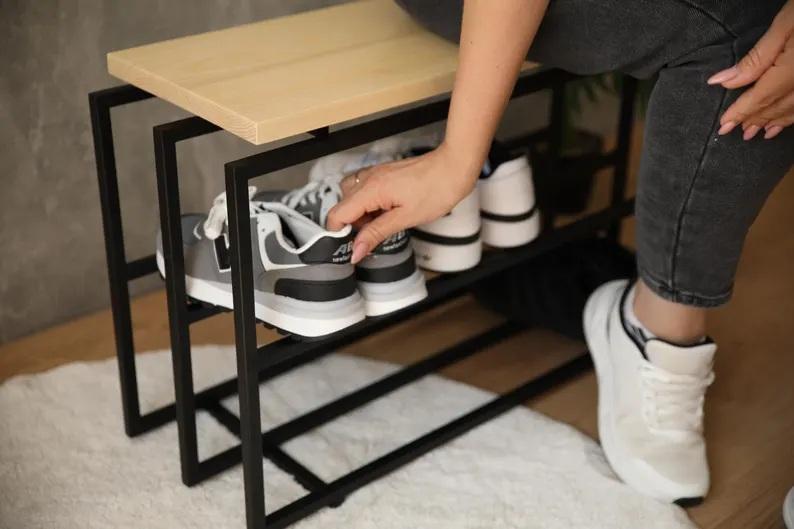 Modern Shoe Rack Bench Dual Tier Storage Organizer Comfortable Seating Top Space Saving Design Strong Frame Entryway Solution