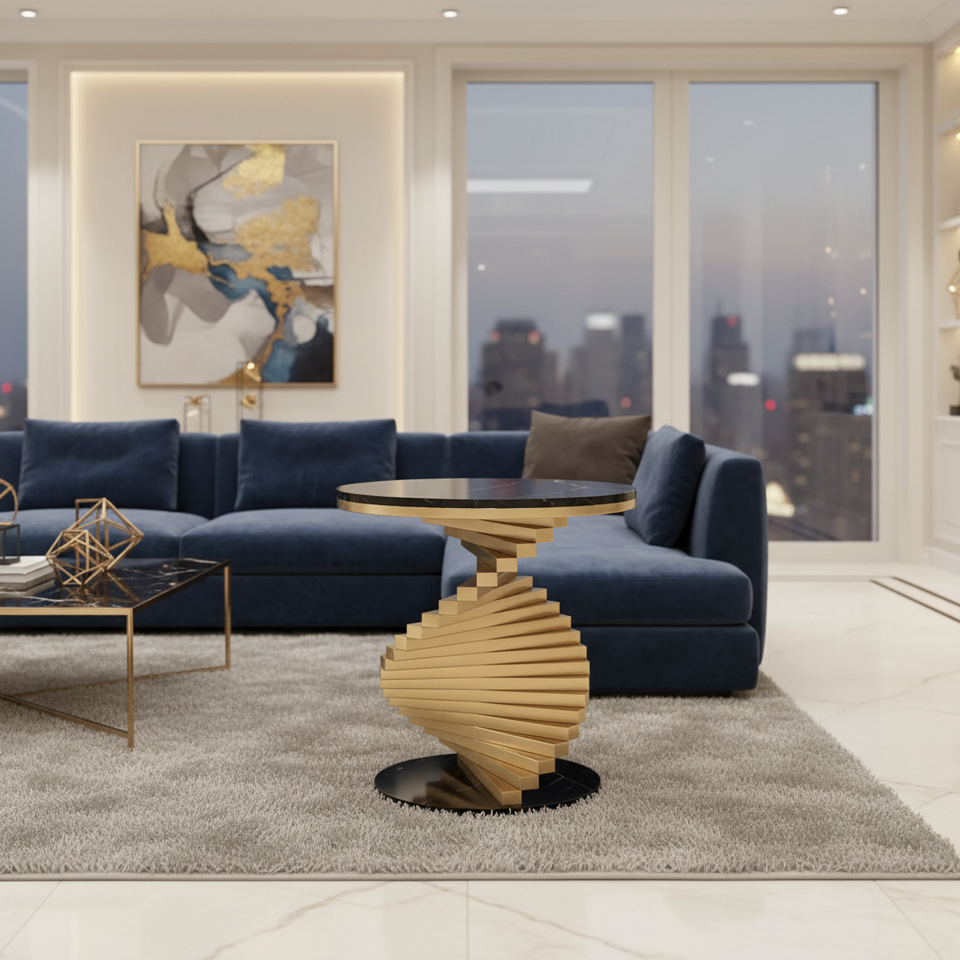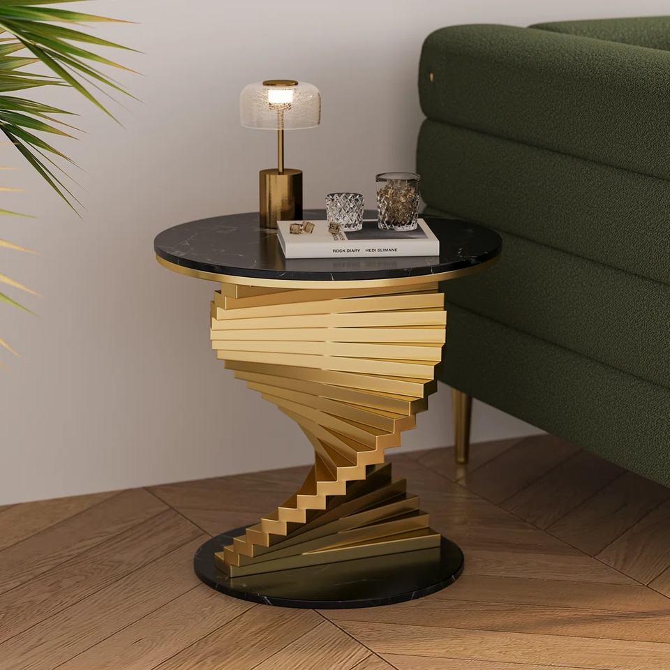 Modern Side Table Black Marble Top Gold Spiral Stainless Steel Pedestal Base Accent End Table for Living Room Sofa Nightstand