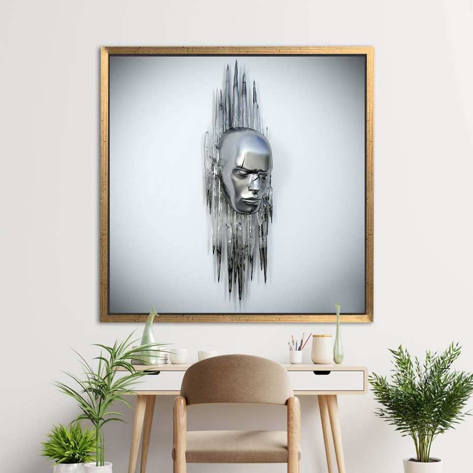 Modern Silver Abstract Canvas Print, Artistic Portrait, Trendy Decor,Gold Framed