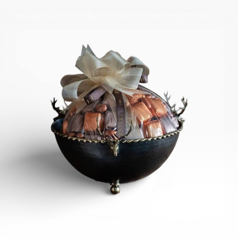 Modern Silver Chocolate Serving Bowl Set with Textured Finish and Gold Base Elegant Luxury Dessert Display
