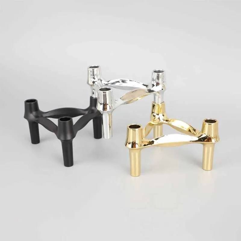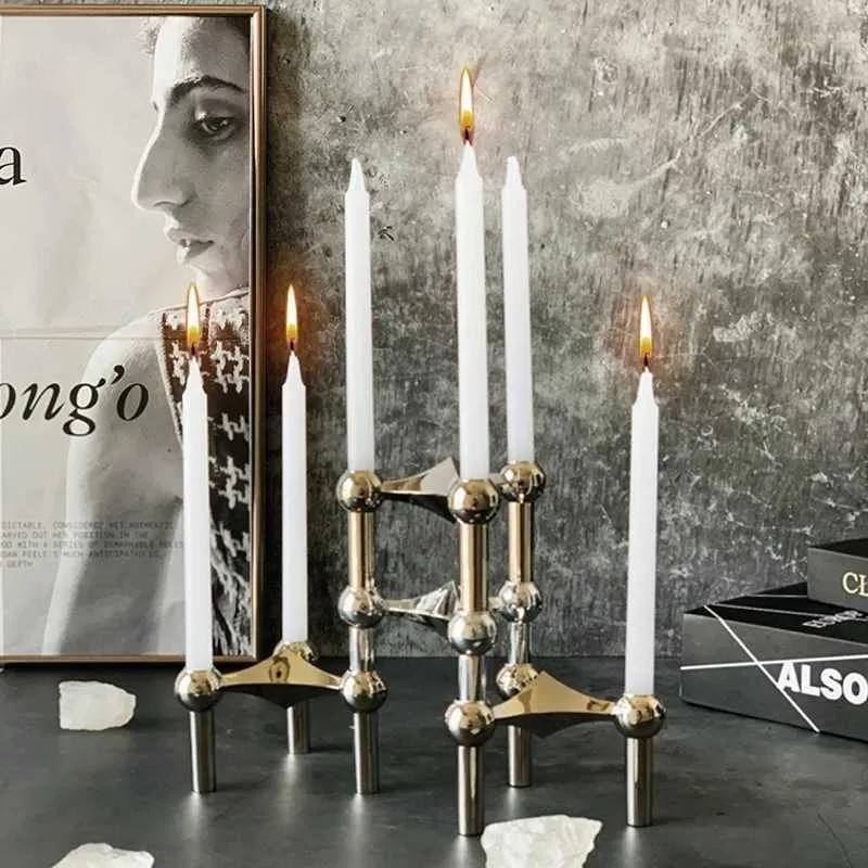 Modern Silver Geometric Candle Holder 4 Light Statement Piece Decor