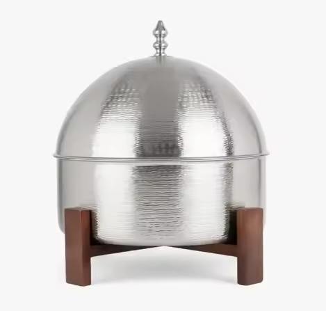 Modern Silver Hammered Art Decor Hotpot Wood Handle Glass Kitchenware Cookware for Home Food Serving Wedding Dish Lid Metal