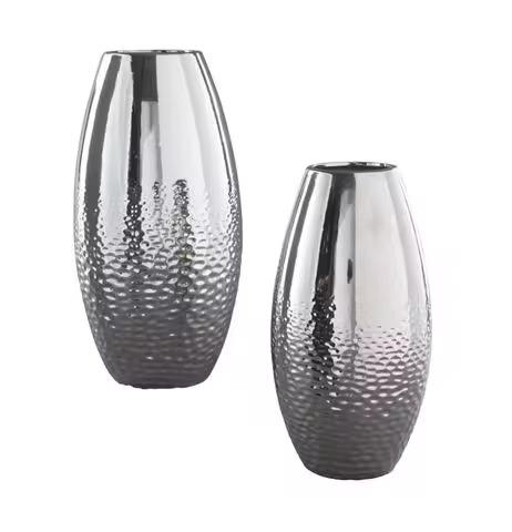 Modern Silver Hammered Metal Vase Handcrafted Decorative Accent Piece for Home Interior Floral Arrangement and Table Decor
