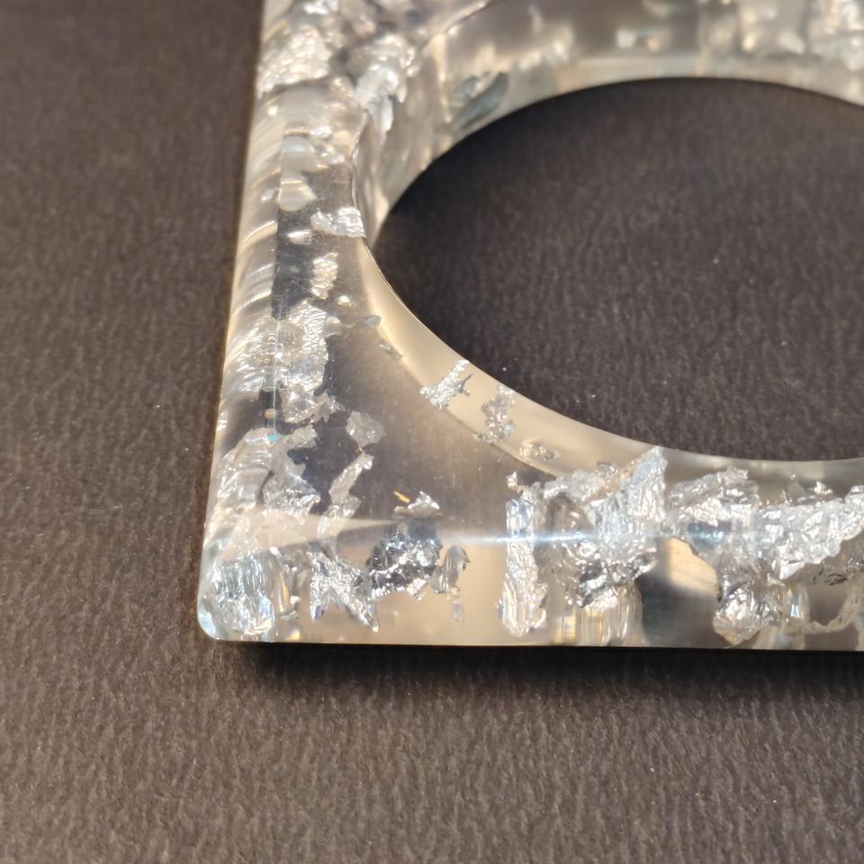 Modern Silver Leaf Transparent Resin Bangle Square Geometric Clear Resin Bracelet with Silver Foil Inlay Wholesale Durable