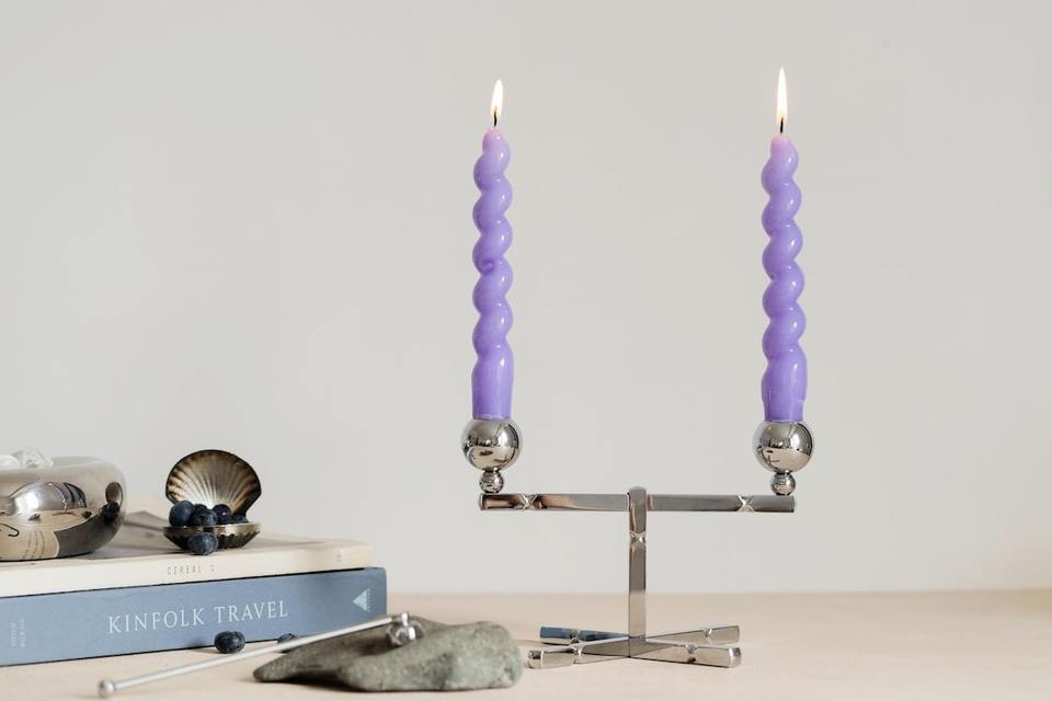 Modern Silver Metal 2 Arm Candelabra Luxury Chrome Taper Candle Holder Nordic Geometric Candlestick Stand Wedding Table Decor