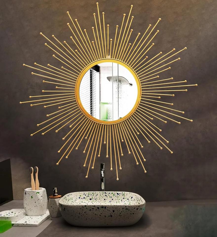 Modern Silver Round Wall Hanging Mirror Handmade Woven Rattan Frame Decor for Home Use