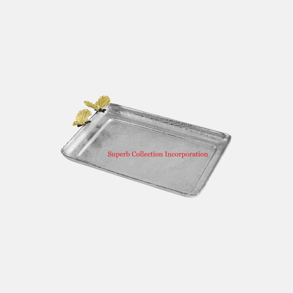 Modern Silver Tray Made Of Metal With Gold Accents Snacks Dessert Serving Tray Perfect For Displaying Small Items For Sale