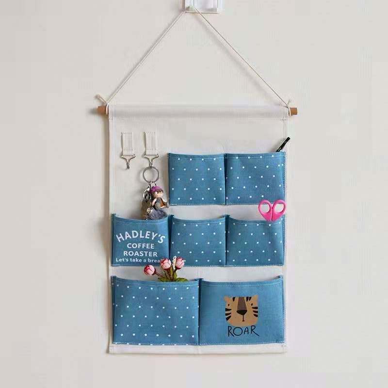 Modern Simple 3-Compartment Hanging Storage Bag Waterproof Cotton and Linen for Tool Organization After Door Admission