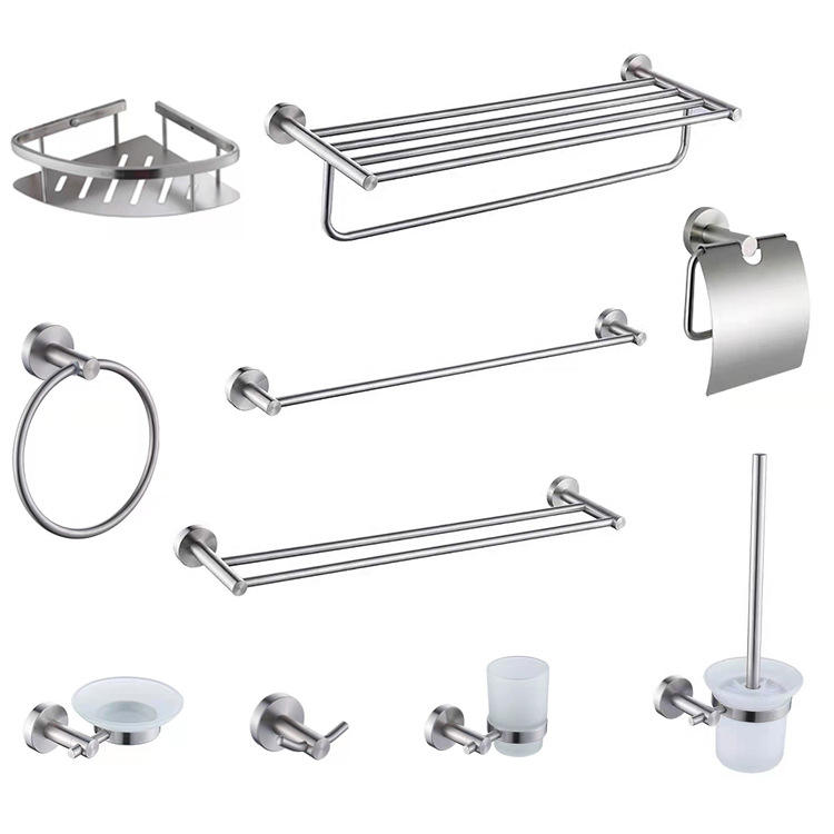 Modern Simple 304 Stainless Steel Bathroom Accessories Kit Includes Toilet Shelf Hardware and Towel Racks for Bathrooms