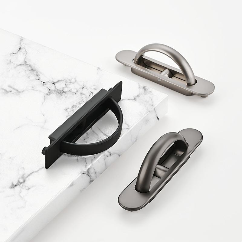 Modern Simple Black Tatami Embedded Cabinet Door Zinc Alloy Invisible Pull Handles for Dresser Rotating Hidden Drawer Bedroom